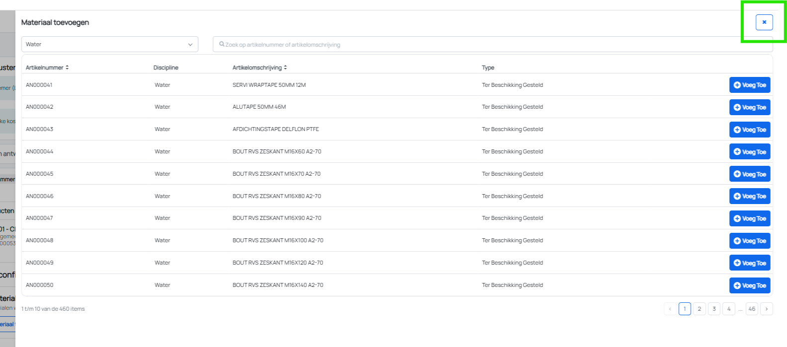 Ter voorbereiding op de ondersteuning van andere raamovereenkomsten hebben we de mogelijkheid toegevoegd om bij het initiëren van een project een werkgebied te kiezen. Het werkgebied van het project wordt vervolgens meegenomen in de selectie van het juiste contract en bijbehorende prijzen. Het selecteren van een werkgebied zal alleen zichtbaar worden bij ondersteunende raamovereenkomsten.