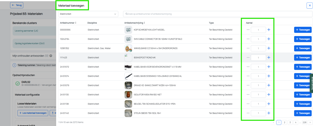 Vanaf deze release is het mogelijk om bij het toevoegen van clusters in prijsdeel 1 een groot deel direct toe te voegen. Dit zonder tussenkomst van een sidepanel. De clusters met een vaste prijs kunnen in dit prijsdeel nu direct worden toegevoegd vanuit de selectie tabel.