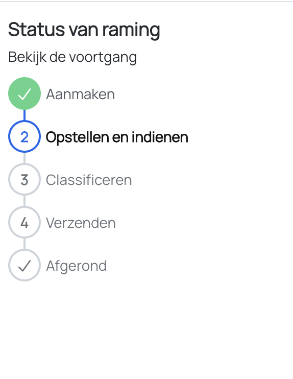De status-workflow (timeline) is verwijderd op pagina’s waar iets wordt opgesteld. Deze workflow toont de voortgang van de status, maar in de opstel-fase stond deze altijd op Opstellen en kan dan nog niet wijzigen. Daarmee was de workflow dus overbodig.